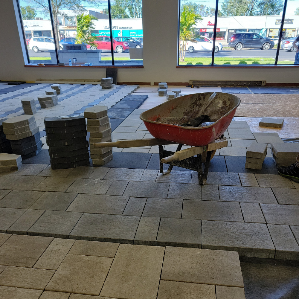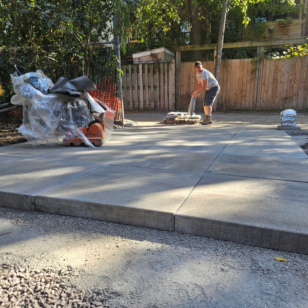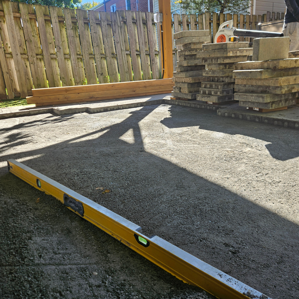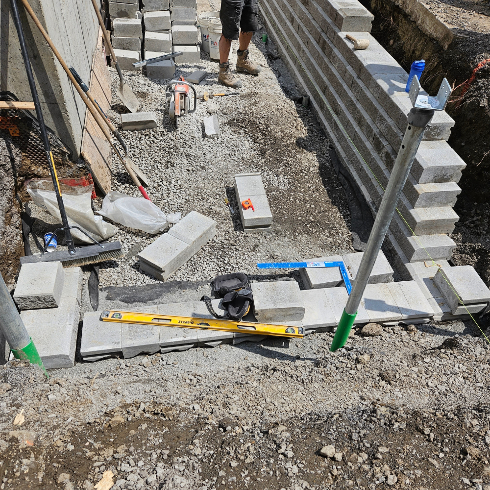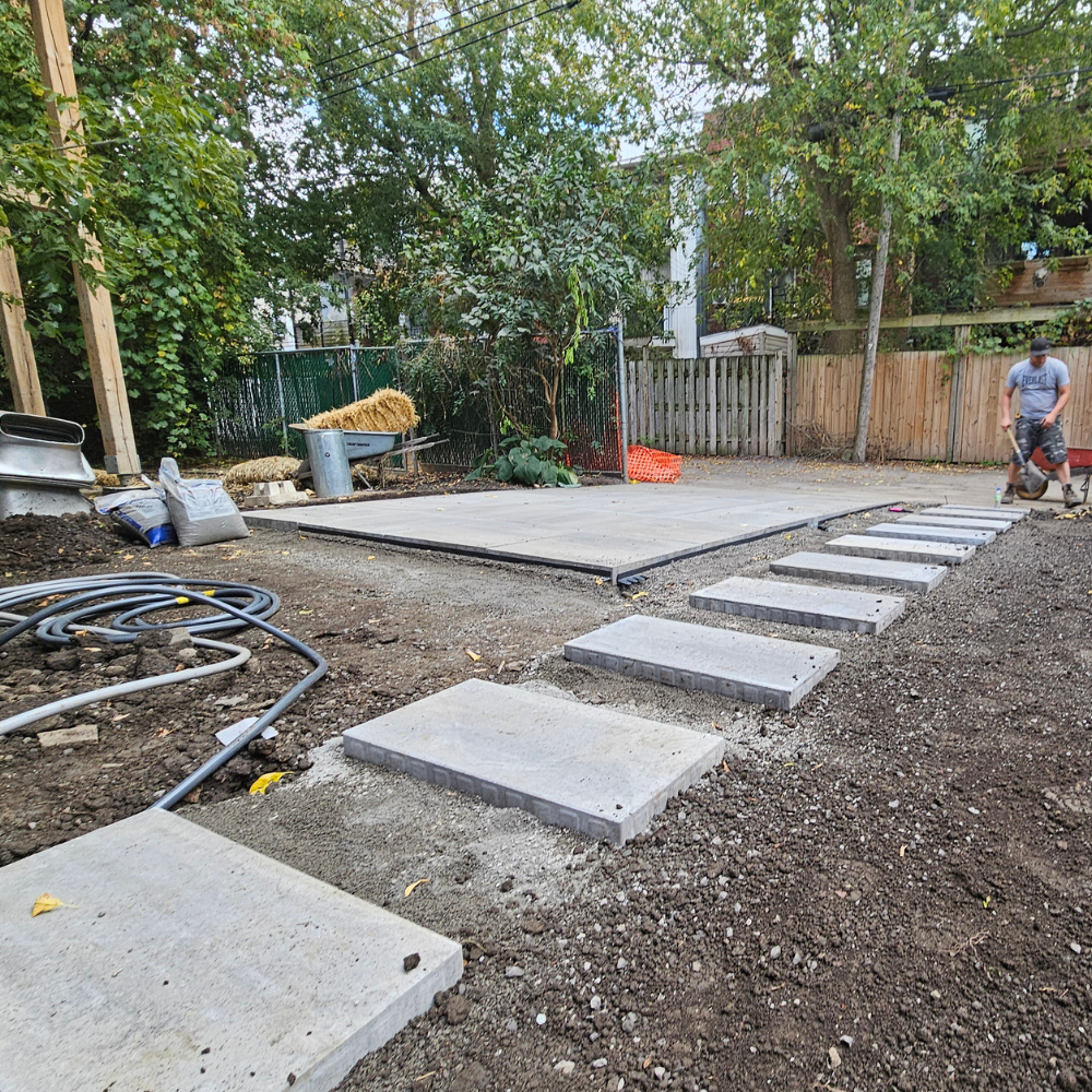 Retrait ciblé du pavé, correction de la fondation et nivelage précis.