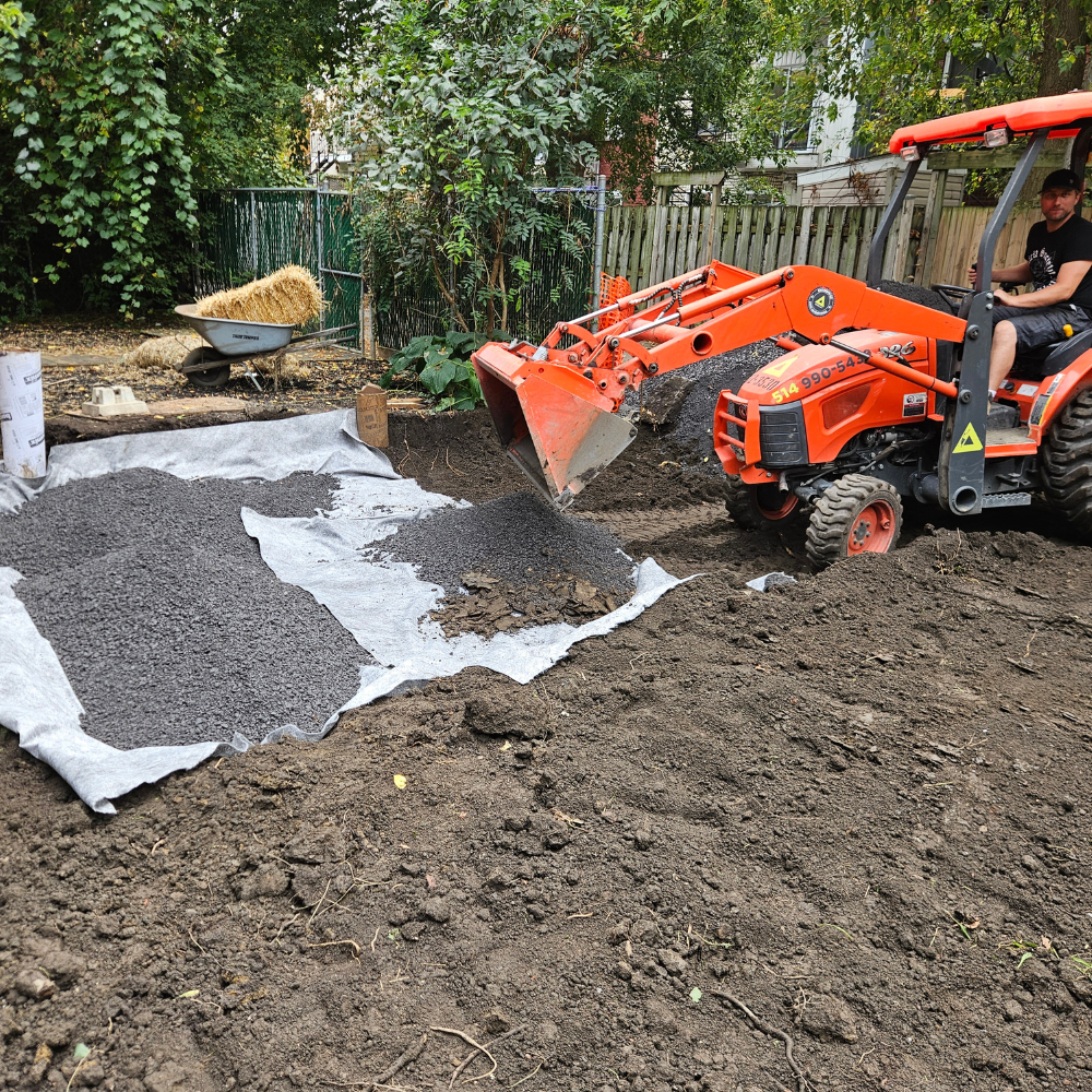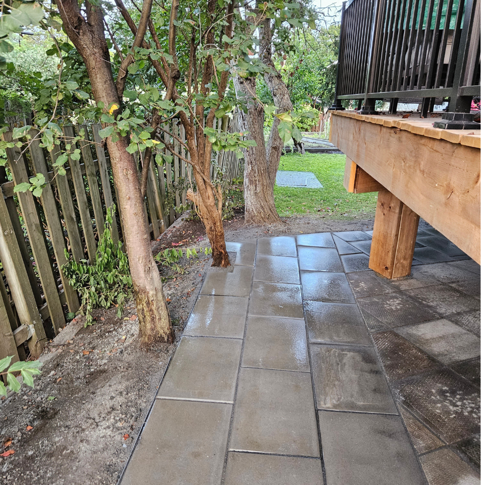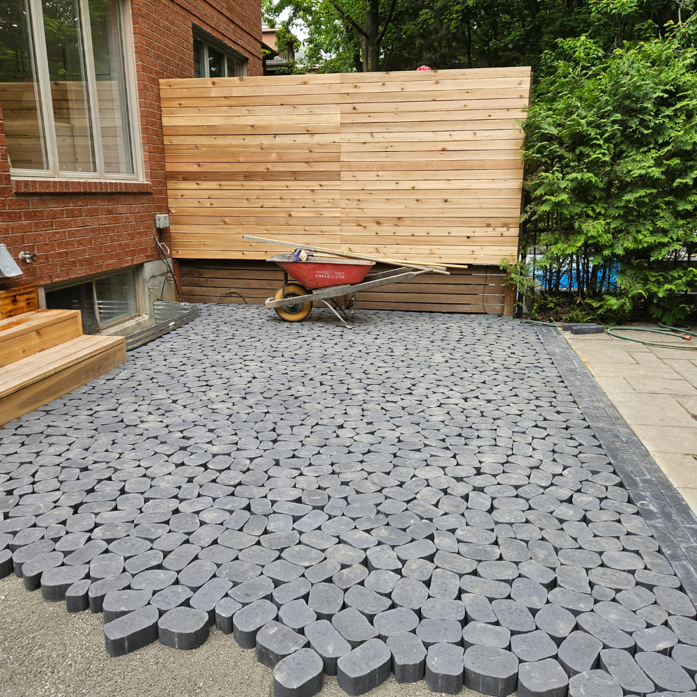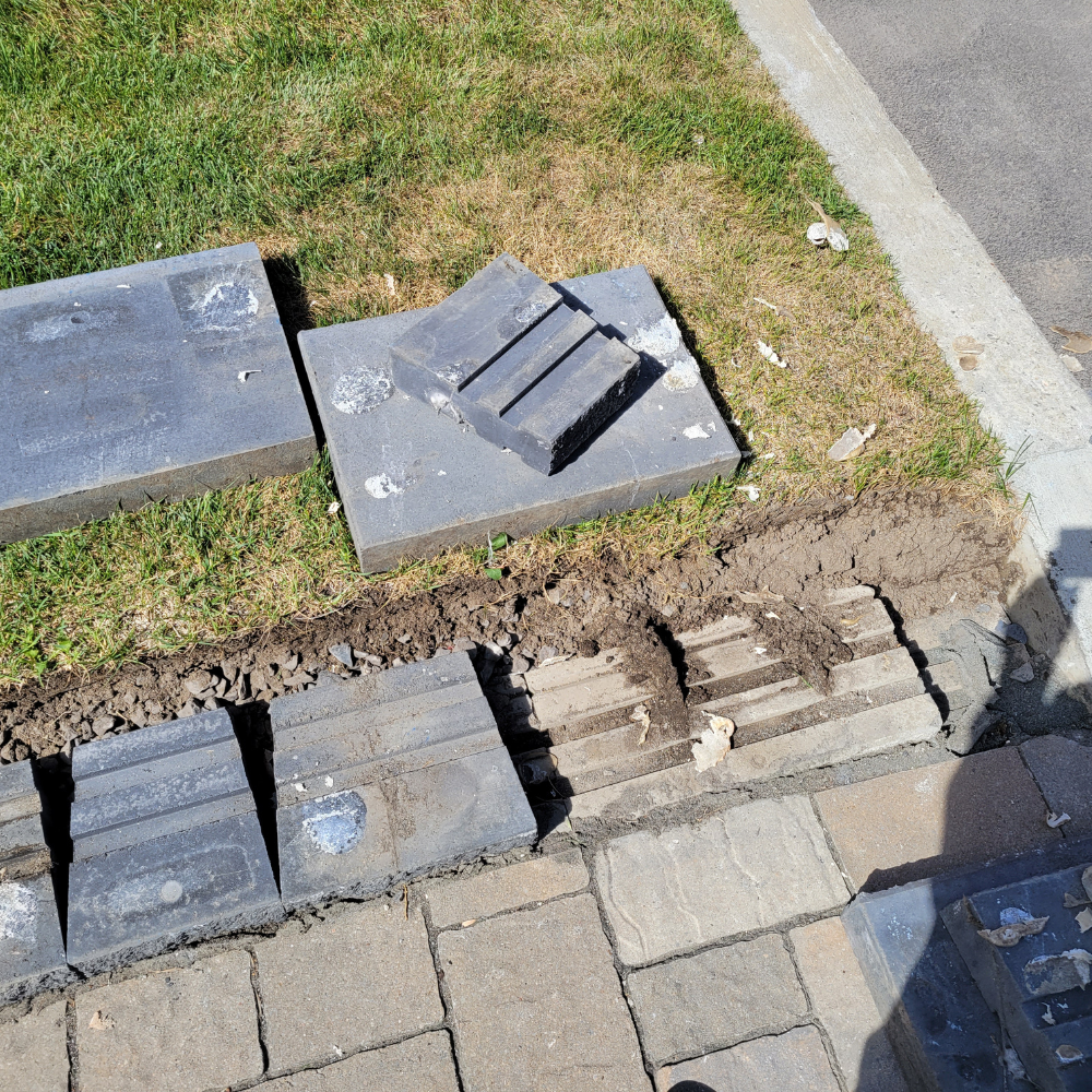 Le pavé est retiré afin d’éliminer les racines, la poussière et les débris qui compromettent la stabilité.